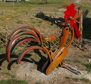 ![]() Coq Cadres de cyclomoteurs et gardes-boue Quoi de plus naturel à la campagne... Et puis, pas d'histoires avec les voisins. |