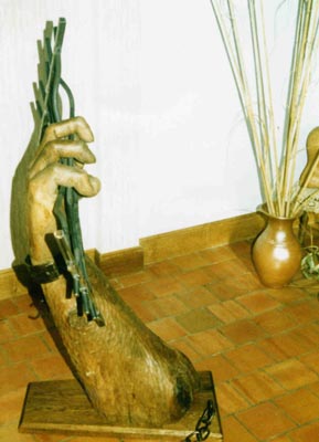 La chemise et la cravate représentent le masque des convenances sociales derrière lequel se cache parfois la violence. Le visage tuméfié de la femme, ses cheveux brutalement empoignés par cette main d'homme, témoignent de sa souffrance physique et de son désarroi. |